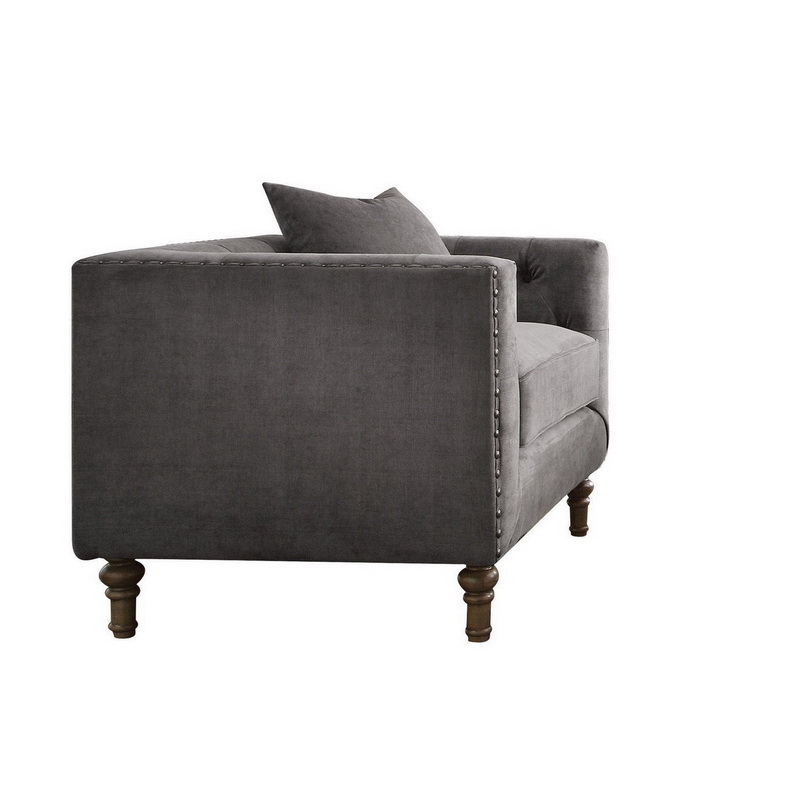 Benjara BM218559 Fabric Upholstered Wooden Sofa Chair with Nail Head Trim, Gray