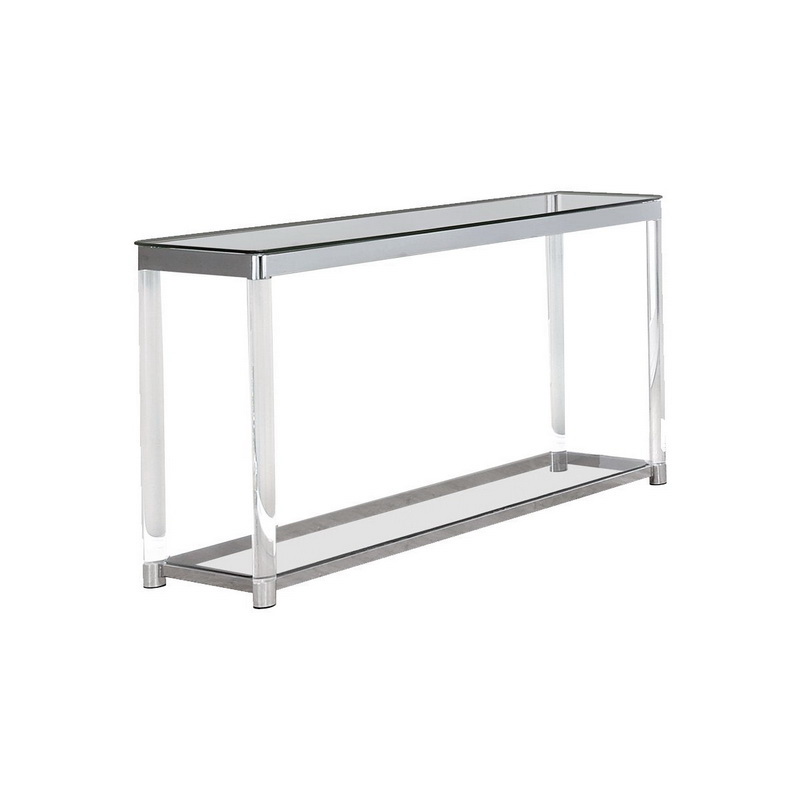 Benjara BM220310 Acrylic Frame Sofa Table with Glass Top and Bottom Shelf, Clear and Chrome