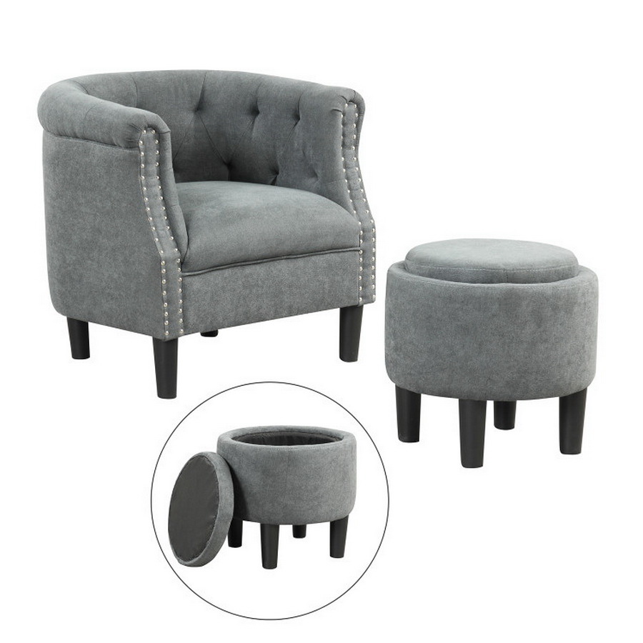 Costway 16735298 Modern Accent Chair with Ottoman Armchair Barrel Sofa Chair and Footrest-Grey