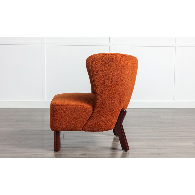 Accent Chair, Upholstered Armless Chair Lambskin Sherpa Single Sofa Chair with Wooden Legs, Modern Reading Chair for Living Room Bedroom Small Spaces Apartment, Burnt Orange WF316705AAO