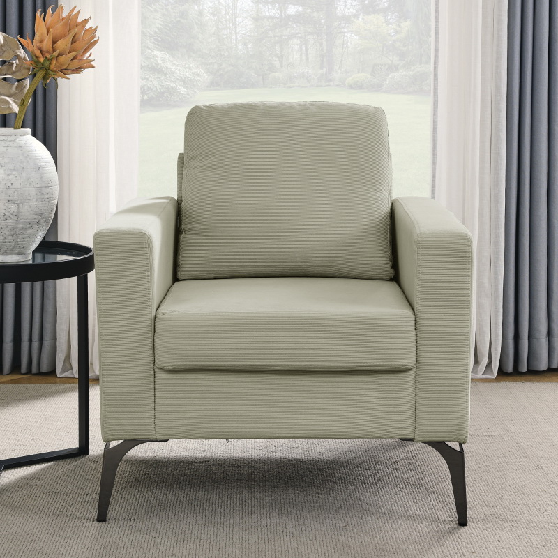 Sofa Chair,with Square Arms and Tight Back,Corduroy Beige W487119628