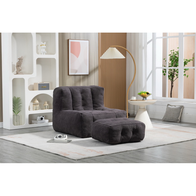 Fluffy bean bag chair, comfortable bean bag for adults and children, super soft lazy sofa chair with memory foam and ottoman, indoor focus bean bag chair for living room, bedroom, apartment
