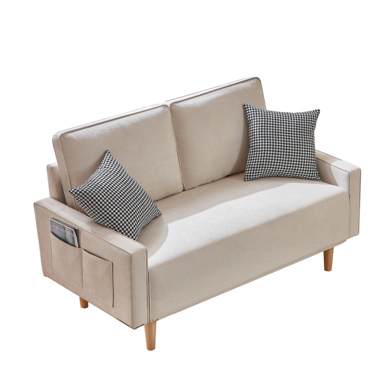 57.5-inch cotton linen dark gray love seat sofa Metal feet Plastic feet Chunky cushion with two armrests W1278S00009