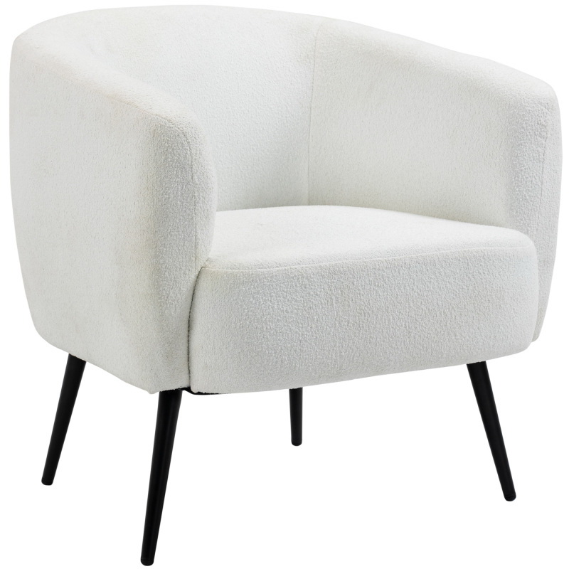 HOMCOM Teddy Fleece Fabric Accent Chair, Mid Century Barrel Armchair with Metal Legs and Soft Padding, Upholstered Single Sofa Side Chair for Living Room, Cream W2225141482