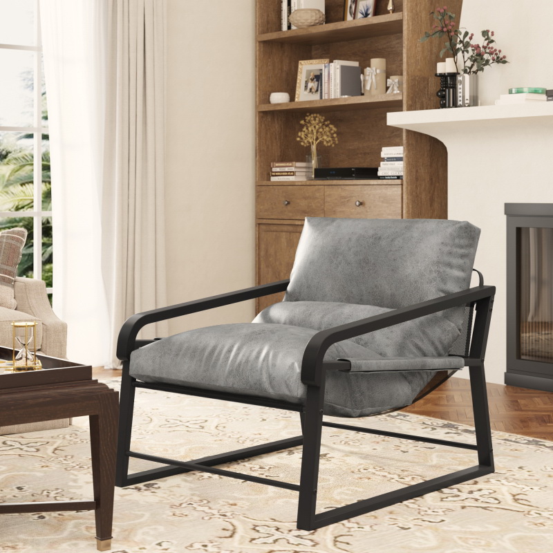 Metal Frame Accent Chair, Comfy Armchair with Cushion, Lounge Sofa Chair for Living Room, Bedroom - Gray