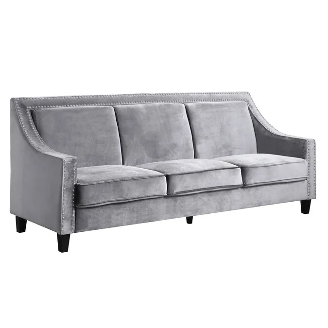 Chic Home Design Bea 84-in Modern Grey Velvet 3-seater Sofa