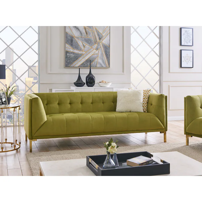 Chic Home Design Azalea 87-in Modern Olive Velvet 3-seater Sofa