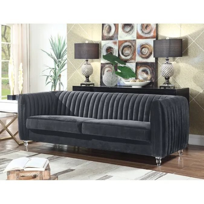 Chic Home Design Kent 88-in Modern Grey Velvet 3-seater Sofa