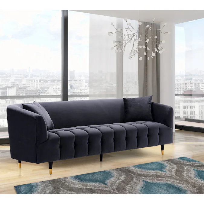 Chic Home Design Julia 88-in Modern Black Velvet 3-seater Sofa