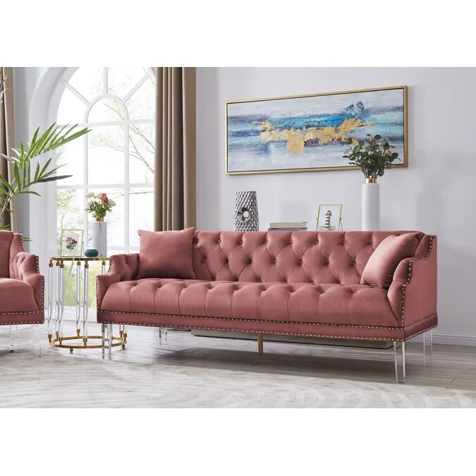 Chic Home Design Julia 88-in Modern Blush Velvet 3-seater Sofa