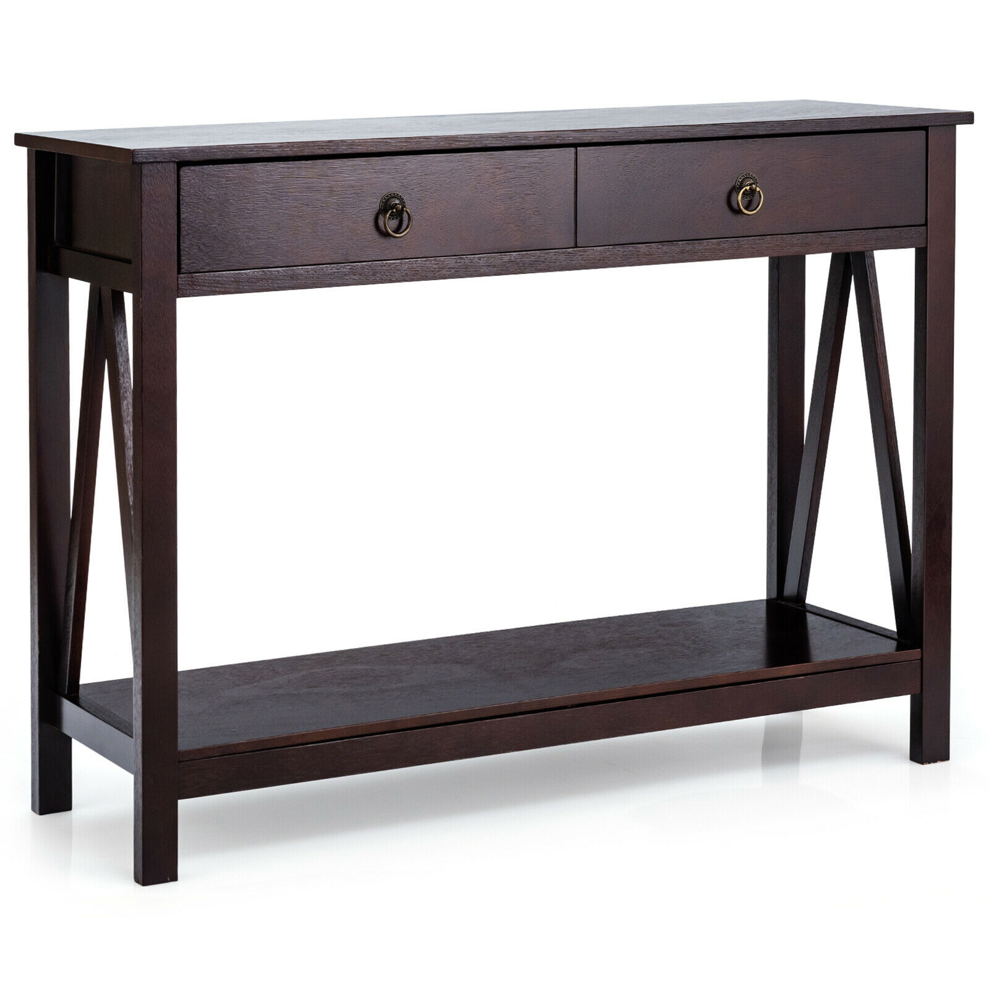 Gymax Console Table Accent Sofa Side Table with Drawer Shelf Entryway Espresso