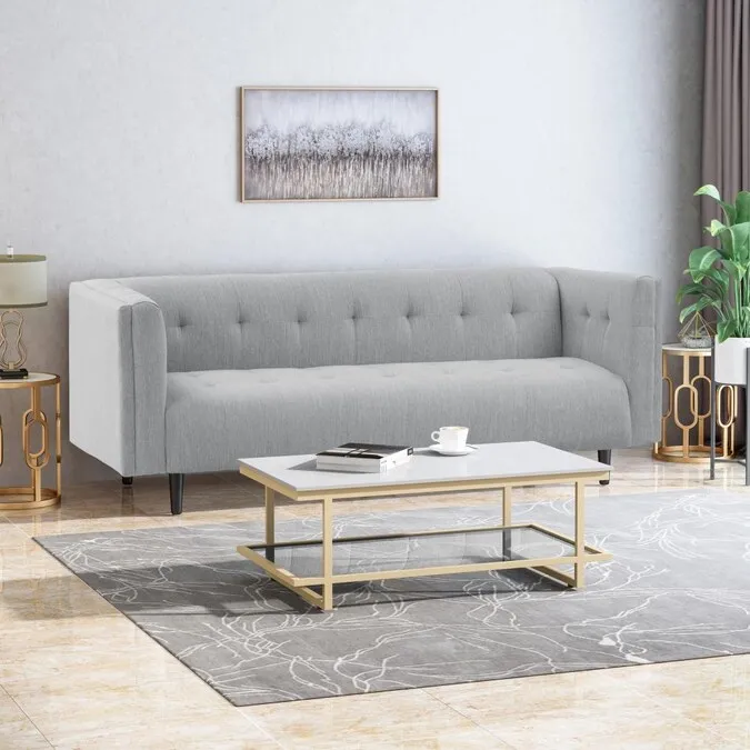 Best Selling Home Decor Ludwig 88.75-in Midcentury Light Gray and Dark Brown Polyester/Blend 3-seater Sofa