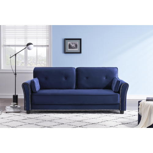 2067 Sofa Armrest with Nail Head Trim Backrest with Buttons Includes Two Pillows 79" Blue Velvet Living Room Apartment Sofa W127846490