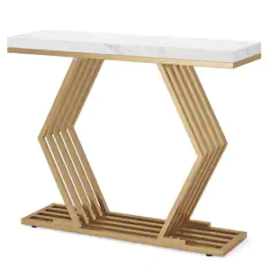 Turrella 42.5 in. Faux Marble White Console Table with Gold Base, Geometric Entryway Sofa Table Narrow Long