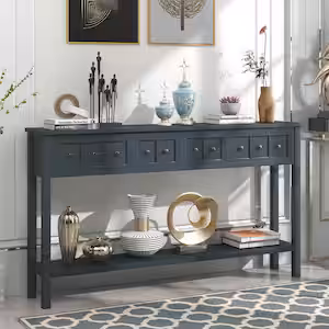 60 in. L Navy Rectangle Wood Rustic Entryway Console Table Long Sofa Table with Two Size Drawers and Bottom Shelf