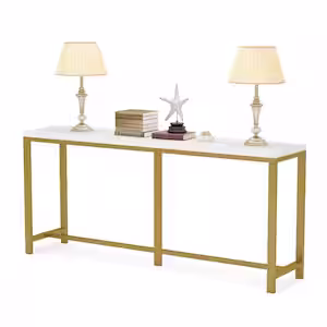 Turrella 70.9 in. Gold White Wood Long Console Table, Narrow Skinny Modern Behind Sofa Couch Table