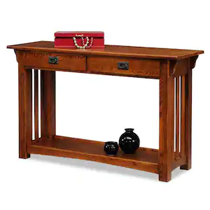Leick Home 16 in. W Mission Impeccable 2-Drawer Hall Console Sofa Rectangle Table, Medium Oak, Wooden Top