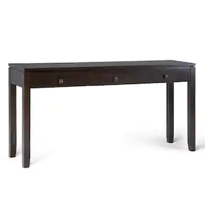 Simpli Home Cosmopolitan Solid wood 60 in. Wide Contemporary Wide Console Sofa Table in Mahogany Brown