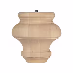 Waddell Turned Bun Foot with Hanger Bolt - 4 in. H x 4 in. Dia. - Sanded Unfinished Hardwood - DIY Leg for Sofa, Stool, Armchair