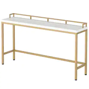 Costway 43.5 in. Gold Rectangle MDF Top Console Table Faux Marble Entryway Sofa Table with Metal Legs Living Room