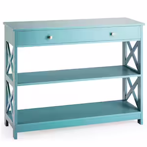 Costway 39 in. Turquoise 31 in. Rectangle 3-Tier Wood Console Table X-Design Sofa Entryway Table with Drawer and Shelves