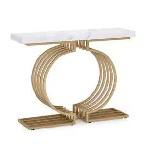 BYBLIGHT Turrella 40 in. Faux Marble White 32 in. Height Rectangle MDF Console Table with Gold Base, Modern Entryway Sofa Table