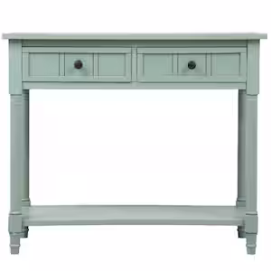 Retro Green Narrow Console Table Sofa Table with Drawers Wood Entryway Table with Drawers and Shelf for Living Room