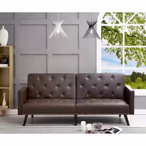 HOMESTOCK 76.6 in. W Espresso, Faux Leather Tufted Split Back Futon Sofa Bed, Folding Convertible Couch Futon Convertible Sofa Bed