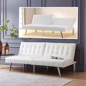 MAYKOOSH 68.5 in W White Tufted Split Back Futon Sofa Bed, Faux Leather Couch Bed, 3-Seat Futon Convertible Sofa Bed