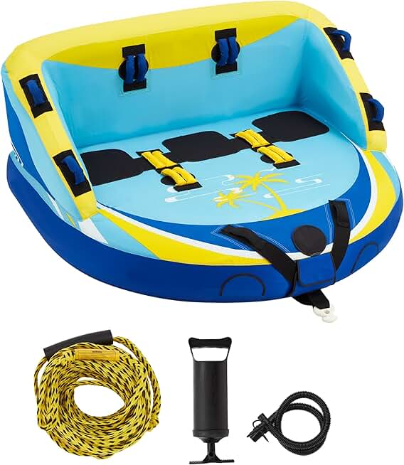 3 Person Towable Tube for Boating, Inflatable Water Sports Towables for Boats to Pull 1-3 Rider, Sofa Style Boat Tube with Dual Front and Back Tow Points, Including Nylon Tow Rope and Air Pump