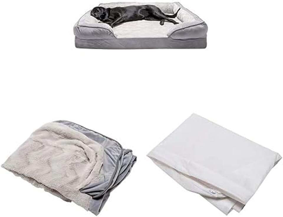 Furhaven Pet Bundle - Jumbo Plus Granite Gray Cooling Gel Memory Foam Plush & Velvet Waves Perfect Comfort Sofa, Extra Dog Bed Cover, & Water-Resistant Mattress Liner for Dogs & Cats
