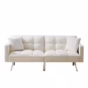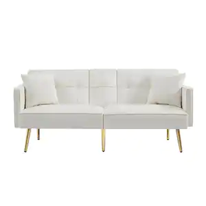74 in.W Beige Velvet Futon Sleeper Convertible Sofa Bed With 2 Pillows