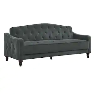 Novogratz Vintage Gray Velvet Tufted Sofa Sleeper II