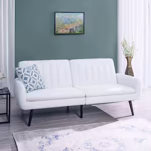 HOMESTOCK Convertible Sofa Futon, Split Back Linen Sleeper Couch for Living Room in White