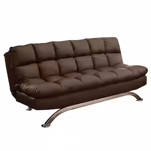 HOMESTOCK Espresso, Faux Leather Tufted Split Back Futon Sofa Bed, Folding Convertible Couch, Futon Convertible Sofa Bed