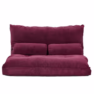 Burgundy Lazy Sofa Adjustable Folding Futon Sofa With Two Pillows