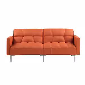 Orange Linen Futon Sofa Convertible Folding Sofa Bed