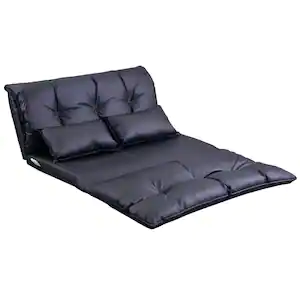 Black Lazy Sofa Folding Futon Adjustable Video Gaming Sofa with 2-Pillows