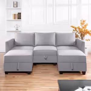 MAYKOOSH Modular Reversible U-Shaped Sectional Sofa with Double Chaise and Ottomans, Modern Linen Couch with Storage Seats, Gray