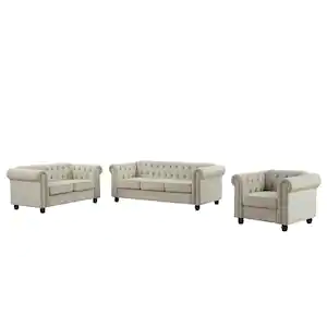 Morden Fort Linen Couches for Living Room Sets, Chair, Loveseat and Sofa 3-Pieces Top Beige