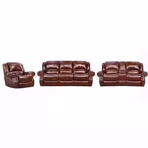 Hanover Aspen 3-Piece Oxblood 100% Genuine Leather Set with Double-Reclining Sofa and Gliding Console Loveseat, Recliner Chair