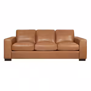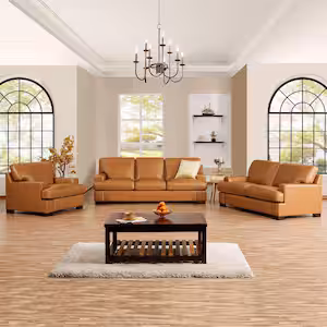 HOMESTOCK Square Arm Contemporary Oversized Genuine Leather Loveseat, and Sofa set for Living Room in Tan