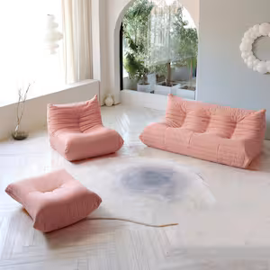 Magic Home 3-Piece Teddy Velvet Comfy Seat Anti-Skip Lazy Sofa Bean Bag Living Room Set in Pink (1 Seater + 3 Seater + Ottoman)