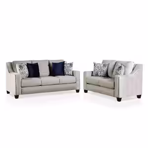 Furniture of America Pelly 2-Piece Fabric Top Light Gray and Navy Sofa Set
