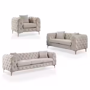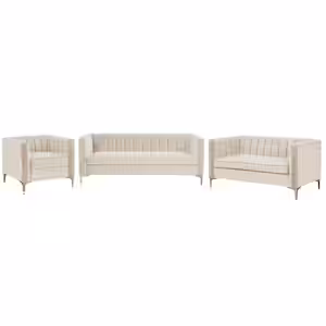 Velvet 3-Piece Sofa Sets Contemporary Home Theater Seating Upholstered Couch Set for Living Room in Beige
