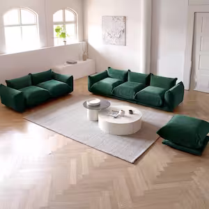 Comfy Living Room Set 2-Seat 3-Seat Ottoman Minimalism Flared Arm Wide Bread Shape Chenille Thick Sofa Couch, Green