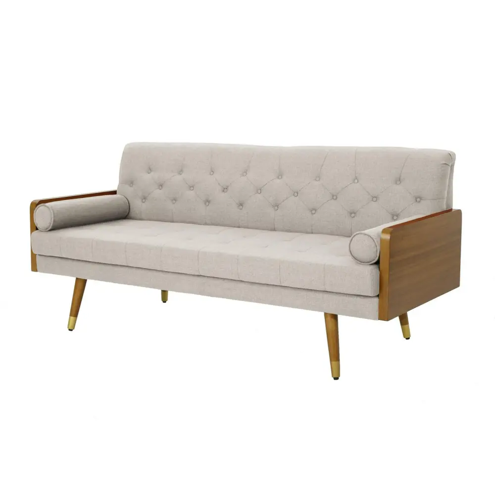 Noble House Orlando Mid Century Modern Tufted Fabric Sofa, Beige