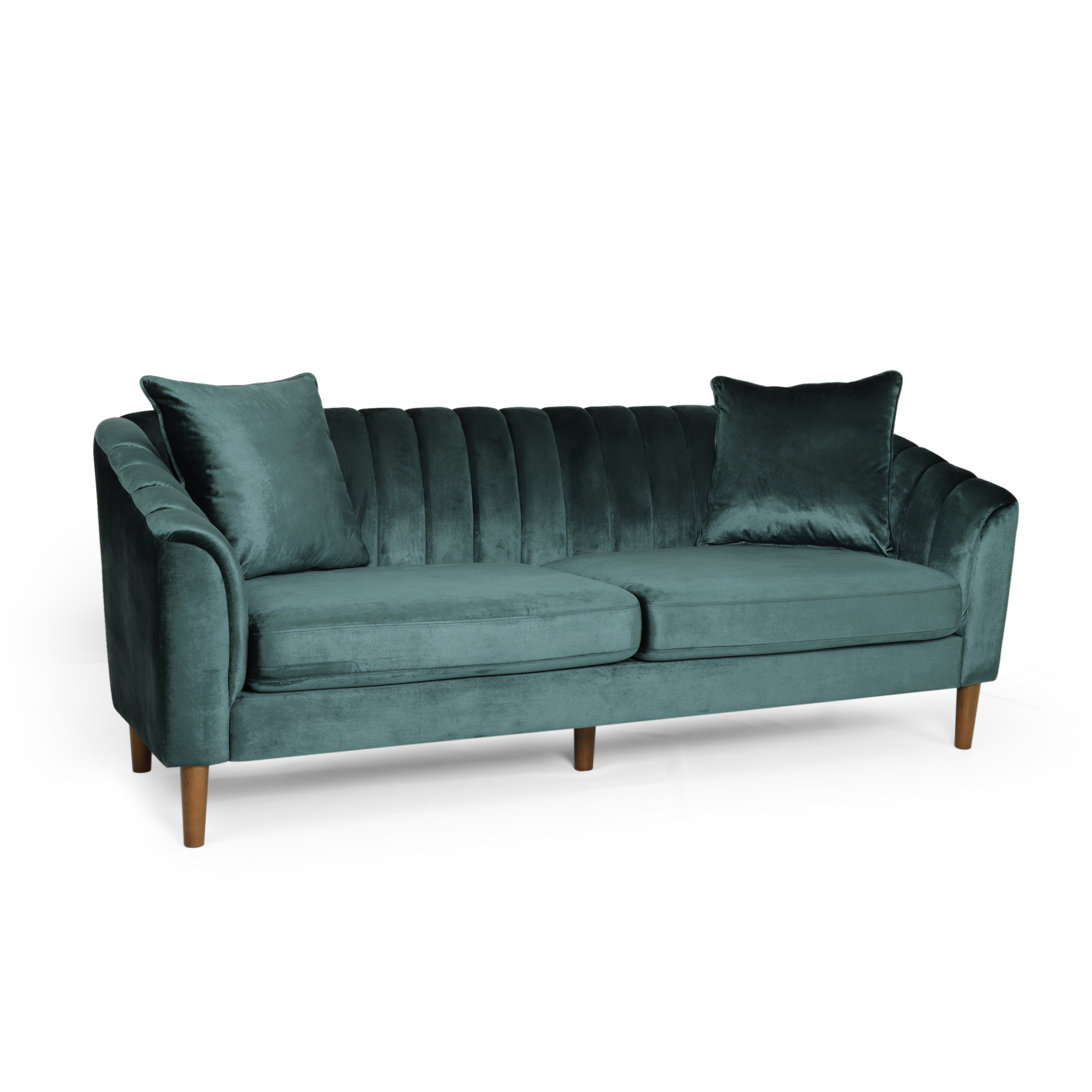 Noble House Currie Velvet Tufted 3 Seater Sofa, Teal