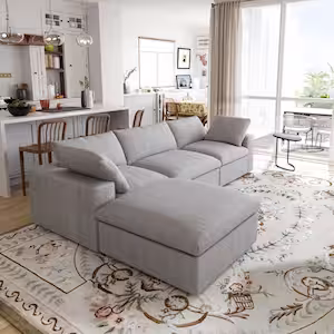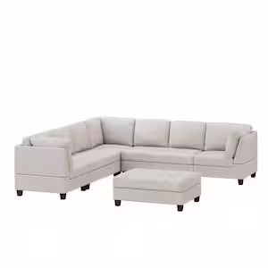 J&E Home 120 in. W Linen Square Arm 2-Piece Light Gray Free Combination Modular Convertible Sectional Sofa