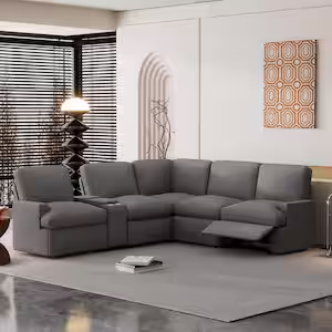Harper & Bright Designs 104 in. Modern Linen Home Theater Reclining Sectional Sofa in Dark Gray with Storage Box, Cup Holders, USB and Socket